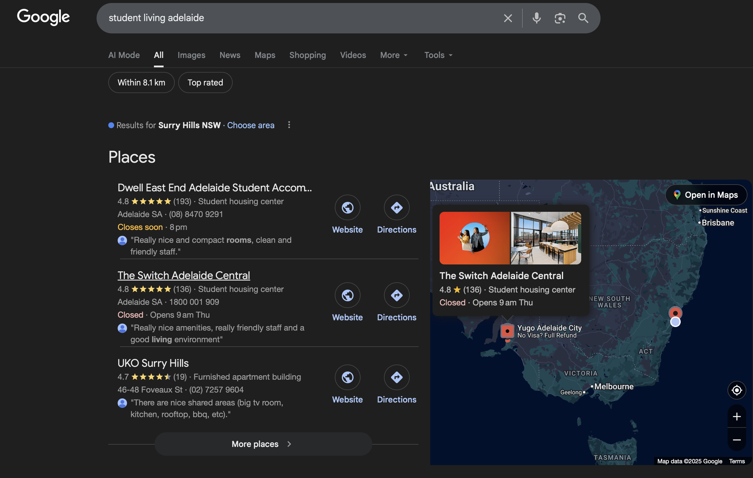 SERP Rank #2 in Adelaide for targeted keyword